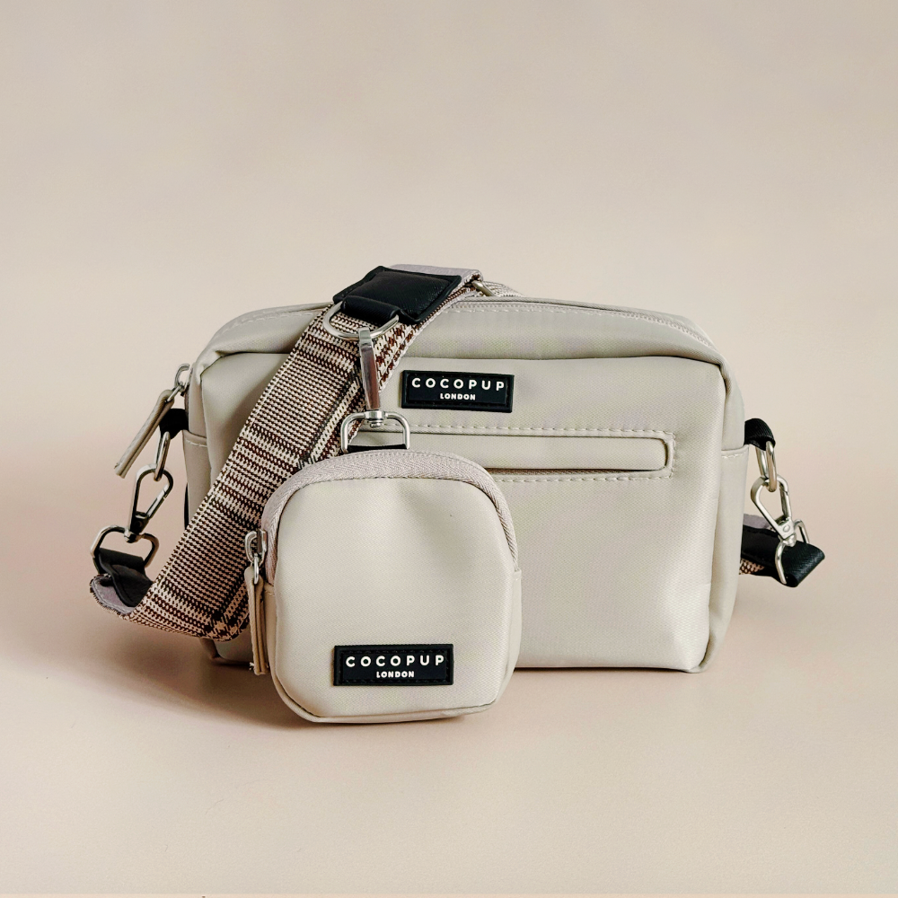 Our Bag Bundle includes: Bag, Treat Pouch & Pup Plaid Bag Strap (with inbuilt poop bag dispenser!)