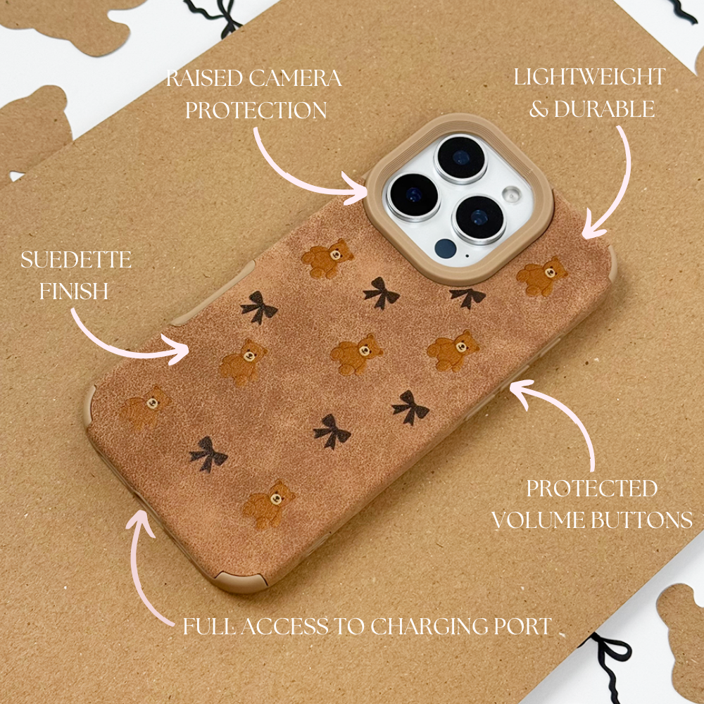 Say hello to the Suedette Phone Case - Bears & Bows 🧸🎀