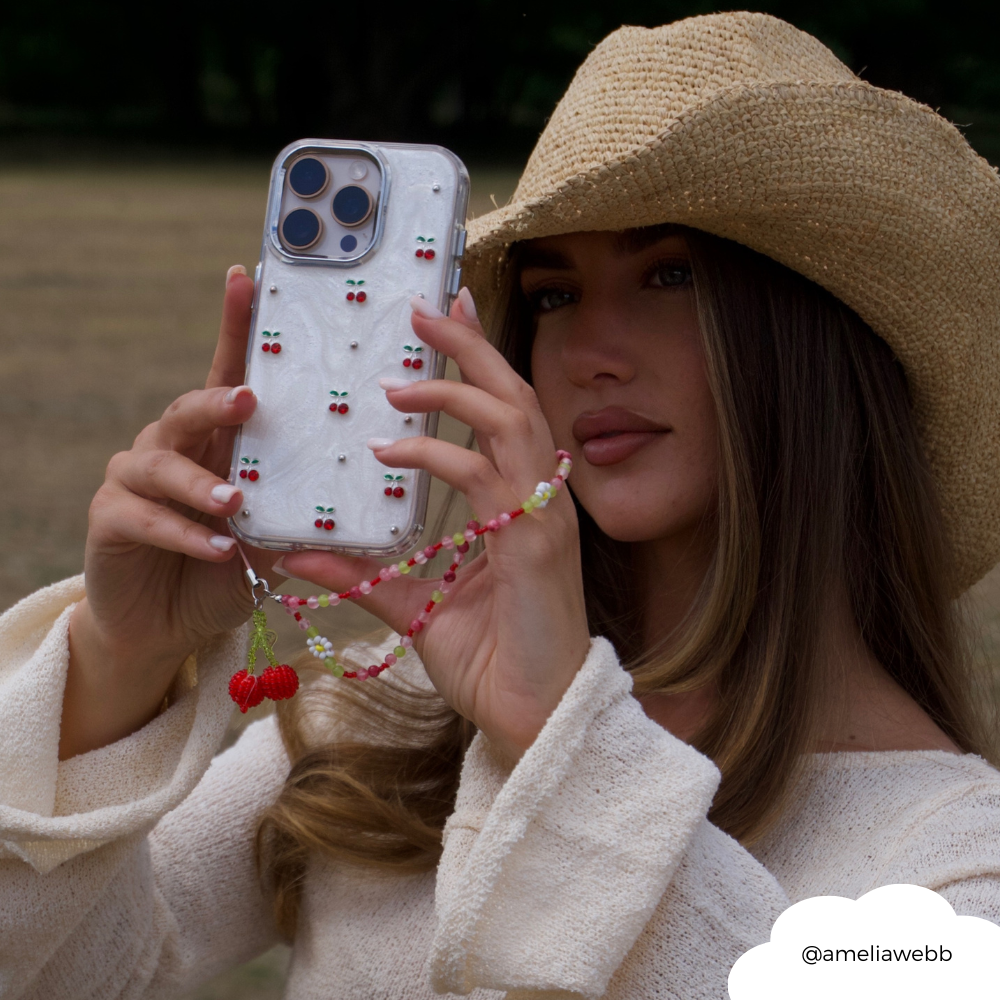 Sweet, sassy, and bursting with charm — the Beaded Phone Strap – Cherry Bomb is your phone’s new statement piece! Featuring bold red beads and adorable cherry accents, this juicy strap brings the perfect pop of playful energy to your everyday look. It’s giving retro, it's giving cute, it's giving cherry on top vibes.