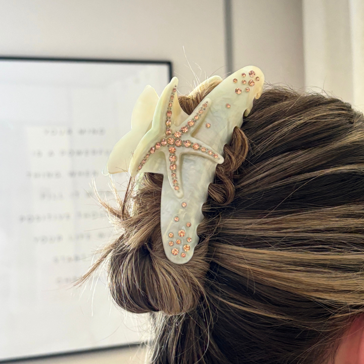 Infuse your hairstyle with vibrant, island-inspired beauty with our Starfish Claw Clip. This stunning hair accessory combines bold design with everyday practicality, perfect for adding a touch of exotic flair to your look.