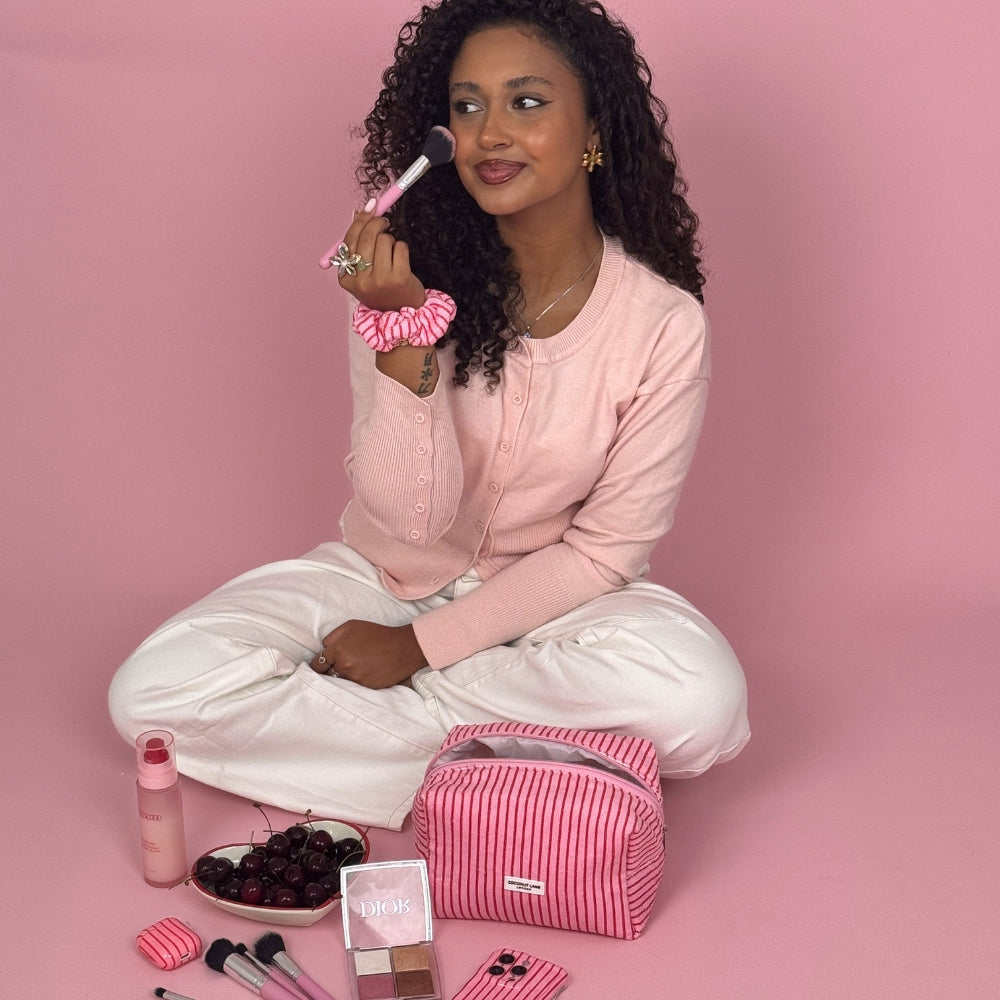 Keep your essentials stylishly organised with the Towel Makeup Bag - Cherry Stripes.